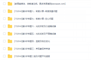 此课件来自学而思网校,跟老杜挑战物理竞赛题视频全套,包含视频课程和讲义资料。主讲杜春雨老师的课堂非常轻松幽默,善于提问,有画面感,让复杂的物理变得简单有趣。此课件主要知识点包括:密度计算-密度测量问题、密度计算空心问题、光的折射及凸透镜成像、光的反射及平面镜成像、温度及物态变化、声现象回声声速、追及问题平均速度、机械运动过桥问题相遇问题等等视频。